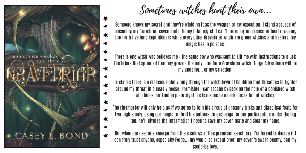 Author, Casey L. Bond had me at the tagline for Gravebriar. Bond is a seasoned writer, with fifty-three distinct works listed on GoodReads. Gravebriar is the first book I have read, but I know damn well I’ll be looking into more of Bond’s books. I thoroughly enjoyed the story & the characters in Gravebriar.